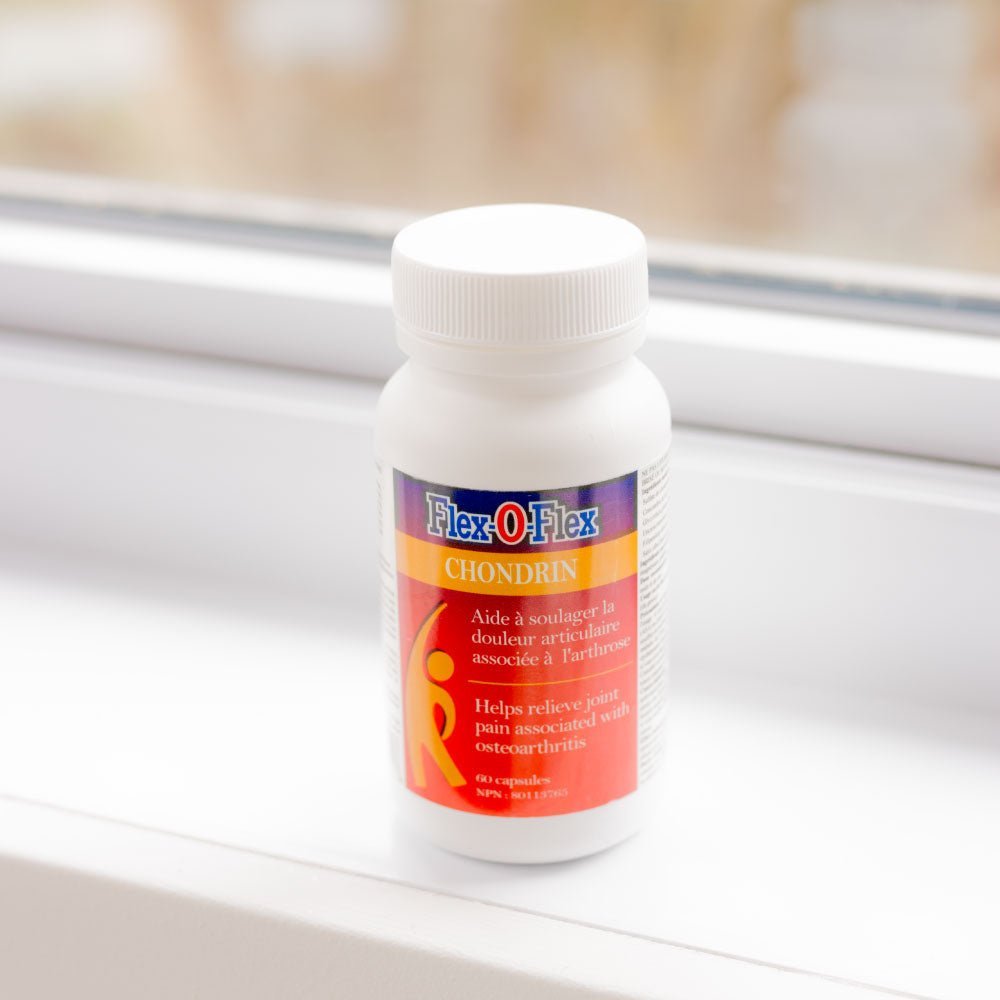 Flex-O-Flex Chondrin fournit du sulfate de chondroïtine dans une formule conçue pour soutenir le confort articulaire chez les adultes vivant avec l’arthrose.