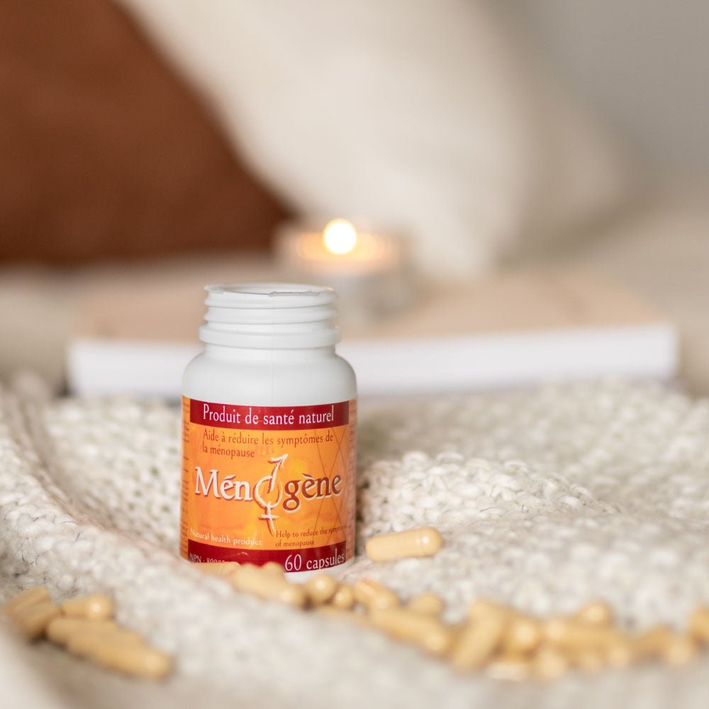 Menogene is a 100% natural dietary supplement formulated to support women during perimenopause and menopause and alleviate its symptoms naturally. Combining the recognized benefits of royal jelly, bee bread, and non-GMO soy isoflavones, this exclusive formula helps restore balance, comfort, and well-being every day.